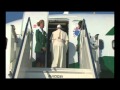 Sau 3 giờ và 45 phút bay, Đức Thánh Cha đã đến sân bay Hoàng Hậu Alia ở Amman. Từ trên máy bay đi xuống, Đức Giáo Hoàng đã được hai trẻ em chào đón ngài với bó hoa uất kim hương là quốc hoa của Jordan.