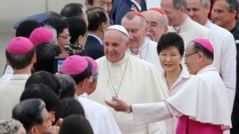 | Tổng thống Hàn Quốc Park Geun-Hye đón tiếp Đức Giáo Hoàng Phanxicô đến Seoul, ngày 14/8/2014. |